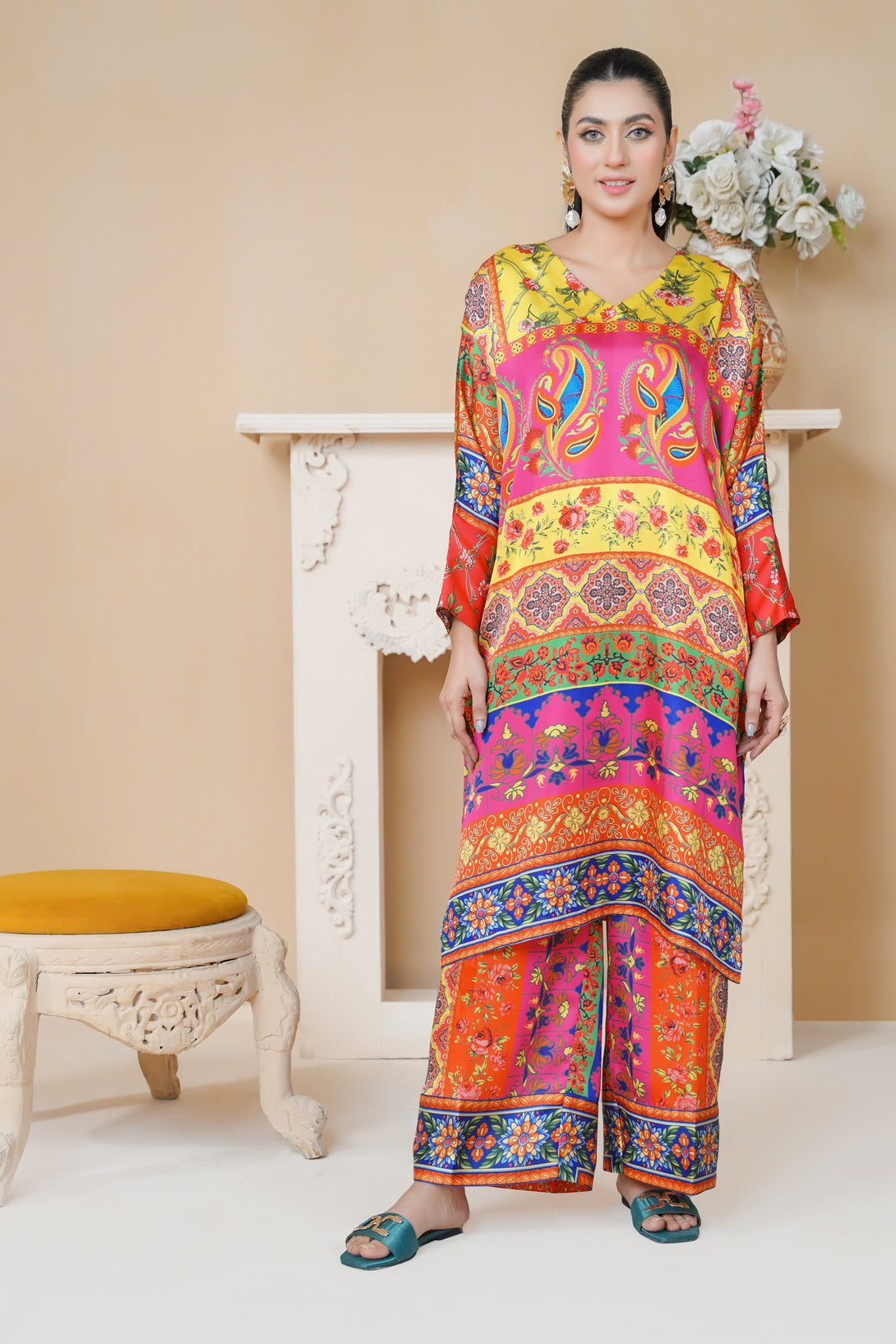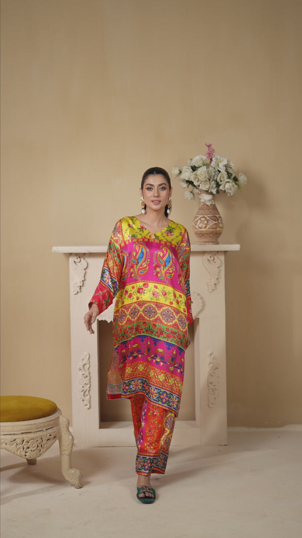 Crafted in Multicolours this two-piece Print suit exudes sophistication with its artistic patterns and modern silhouette. The tunic features a relaxed fit, beautifully complementing the straight-cut trousers. A stylish and versatile choice for both day and evening wear.